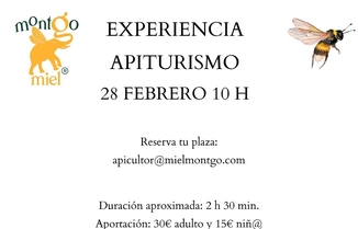 Prior reservation is mandatory via email at apicultor@mielmontgo.com: apicultor@mielmontgo.com. Approximate duration: 2.5 hours.